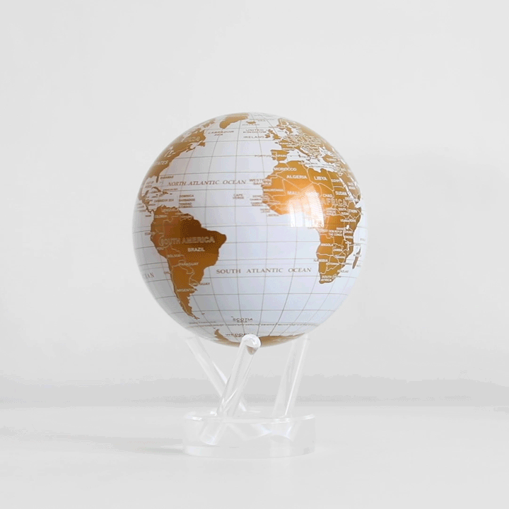 The MOVA Globe will rotate gently, indefinitely and silently under its own power. It contains no batteries and requires no power source or user input or maintenance and will always rotate the direction of the earth’s magnetic field.